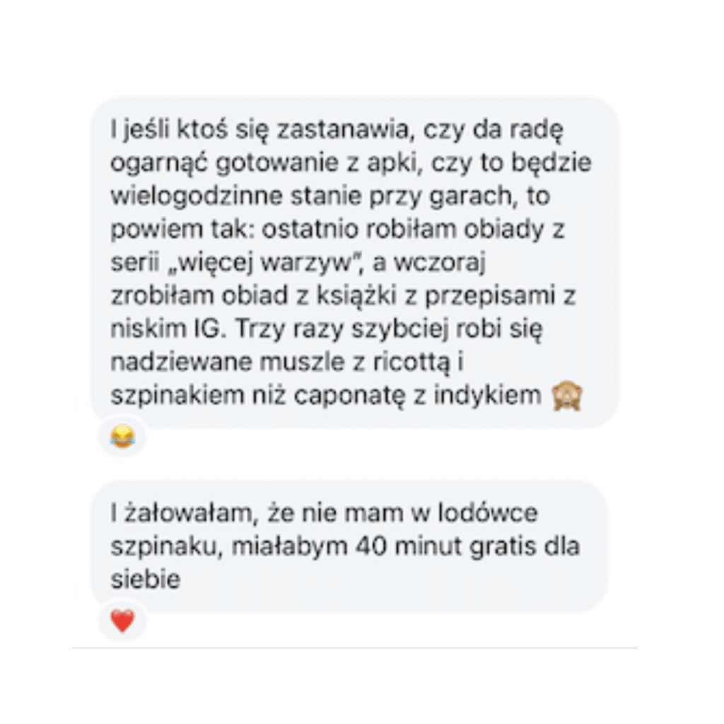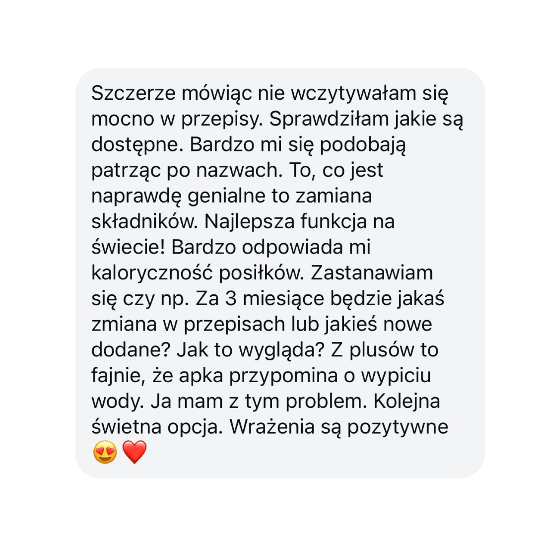 Zamiast wyrzutów sumienia → Czujesz spokój i satysfakcję, bo zamiast sztywnego jadłospisu, układasz swoje posiłki jak puzzle