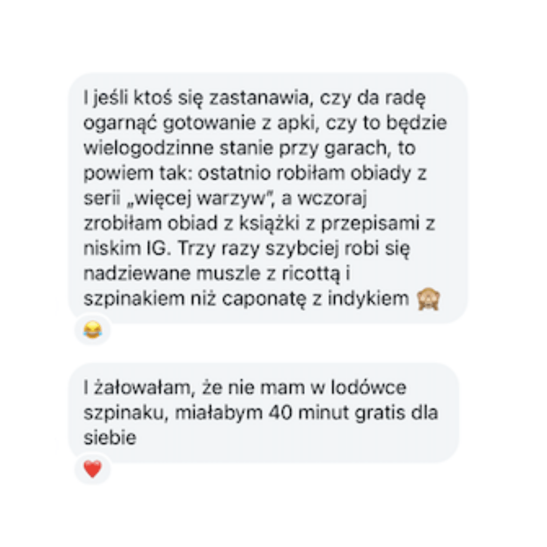 Zamiast liczyć każdą kalorię → Dostajesz przepisy z niskim indeksem glikemicznym po 400-500 kcal