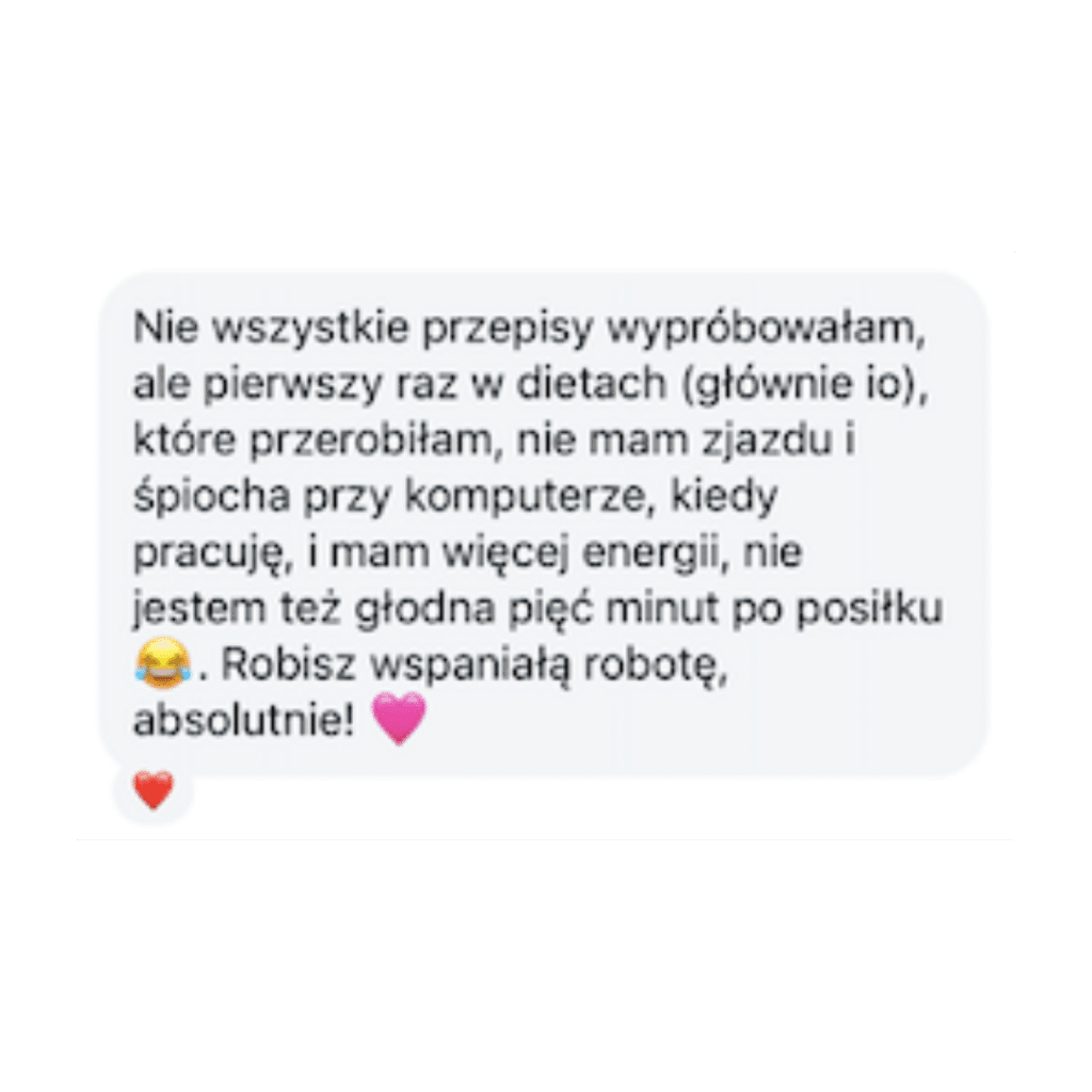 - Każdy posiłek ma niski indeks glikemiczny i 400-500 kcal – jesz bez wyrzutów sumienia, masz więcej energii w ciągu dnia, a po posiłkach jesteś syta.